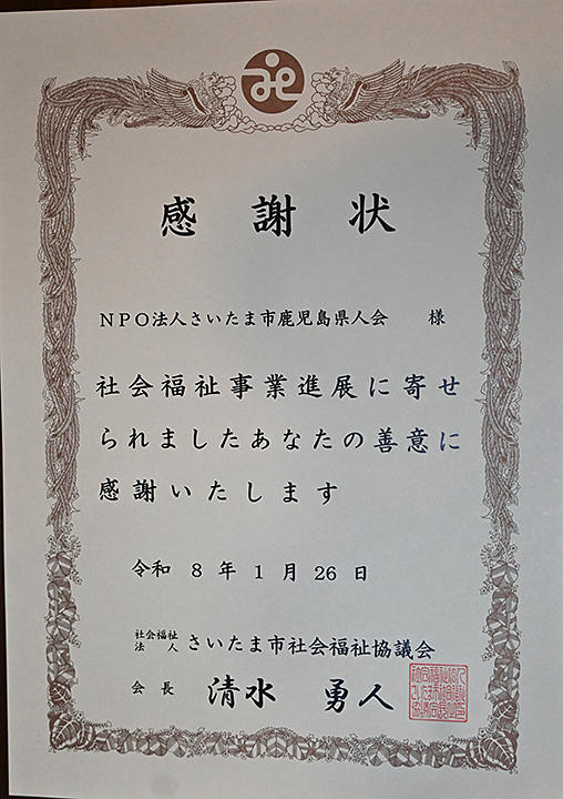 今年は、応援基金の中から吐噶喇列島の地震や、霧島地方でも発生した線状降水帯による水害などに、義援金として鹿児島県にお渡ししています。