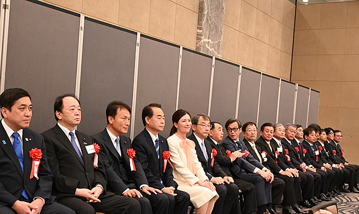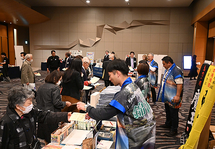 ふるさと・鹿児島からは、塩田康一知事をはじめ国会議員、県議会、市町村長さんなど18名が来賓として出席されました。また、鹿児島県や鹿児島市など市町村関係のブースも9店出店され、ふるさと納税や物産のPRを行いました。