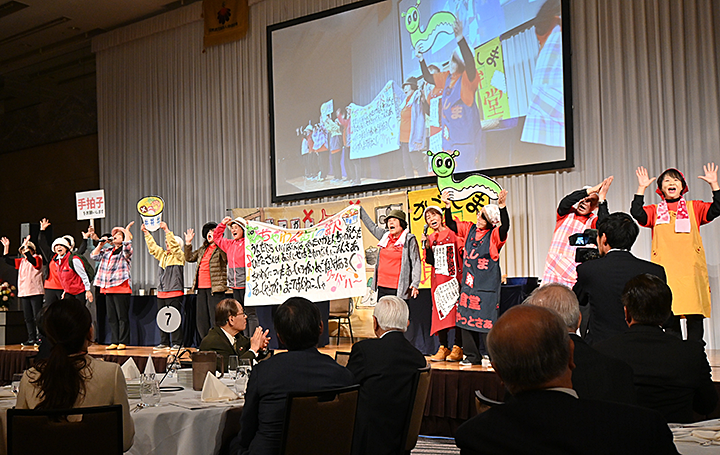 特別演目では、いま鹿児島で活躍する鹿児島弁劇団「げたんは」の18名の皆さんが鹿児島から来ていただき、「茶碗蒸しの歌」を鹿児島弁で面白おかしく演じていただき、会場は明るい笑いで盛り上がっていました。