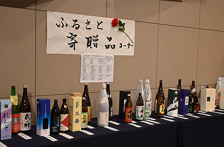 寄付などで集まった数多くの焼酎やお米などの賞品が全員に手渡され、あちらこちらで歓声が上がっていました。