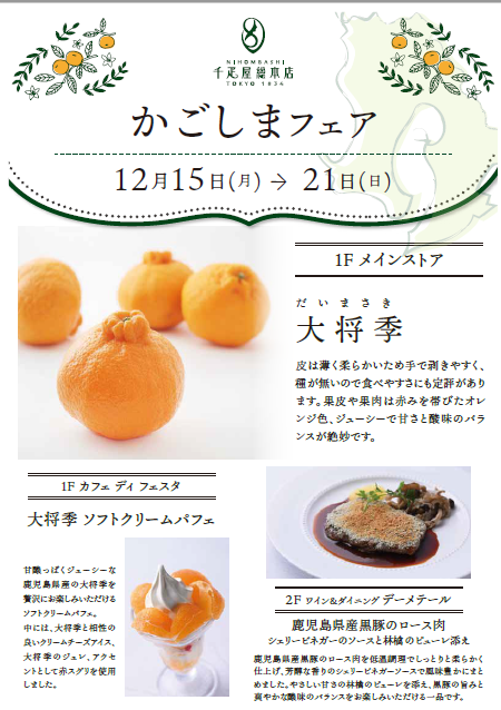 千疋屋総本店で「かごしまフェア」が開催されます。