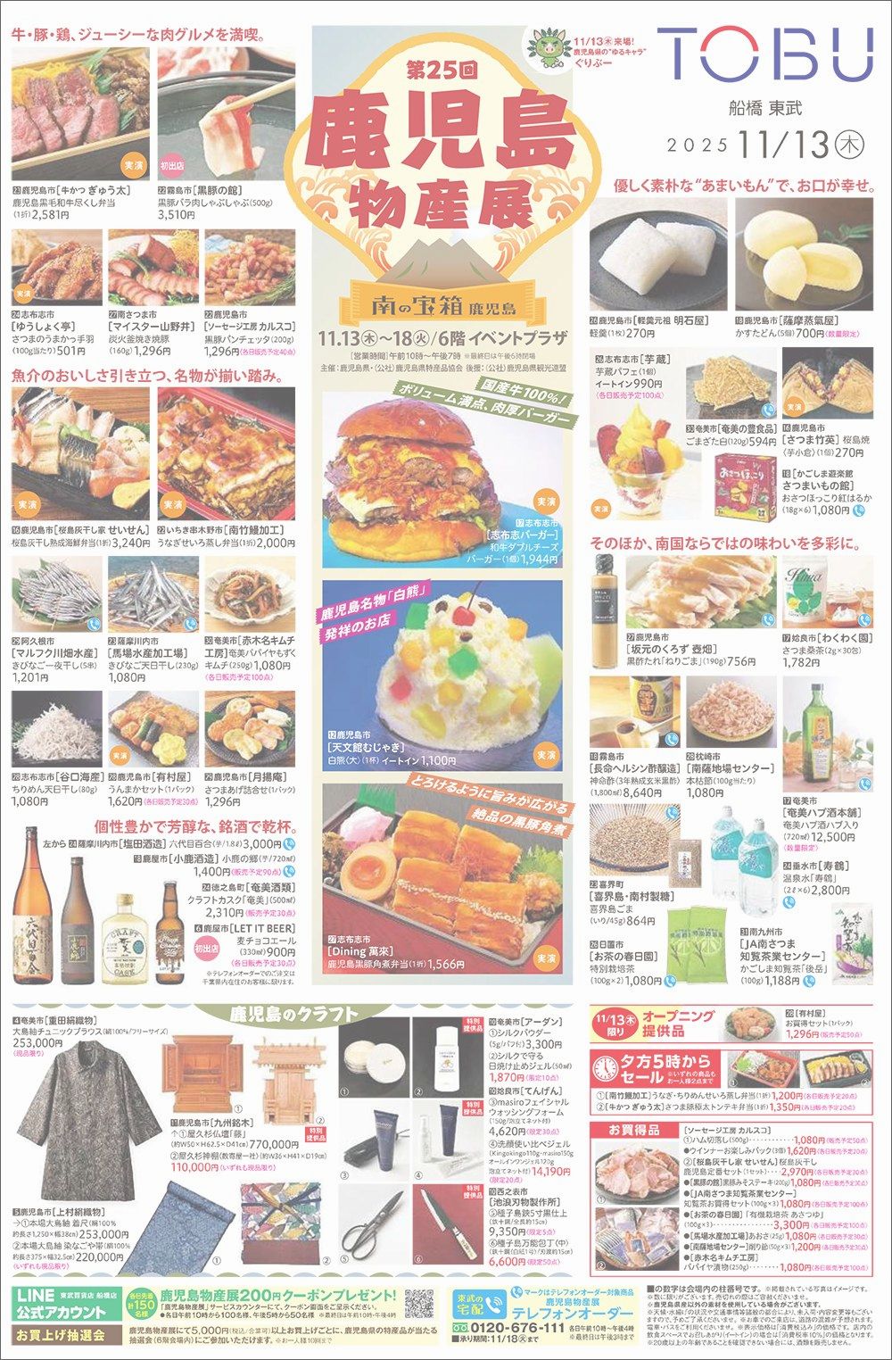 東武百貨店 船橋店では、11月13日(木)~11月18日(火)にかけて、6階イベントプラザにおいて「第25回 鹿児島物産展」が開催されます。出展・出品企業は41社。