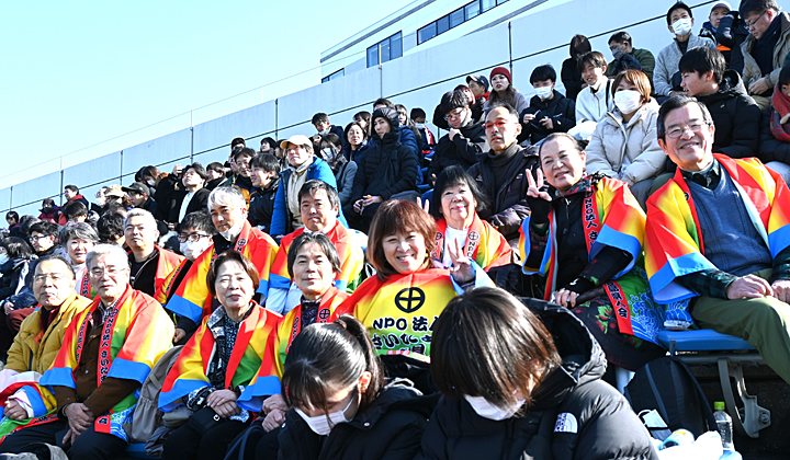 すっきりと晴れ、暮れにしては暖かな12月31日(木)、さいたま市の大宮NACK5スタジアムで開催された「第94回 全国高校サッカー選手権」にて、鹿児島城西高校 vs 札幌大谷高校の試合が行われ、我らがふるさと・かごしまのチームを応援しようと、さいたま市鹿児島県人会では会員の皆様を中心に十数名で熱い声援を送りました。昨年に引き続いての応援ツアーです!